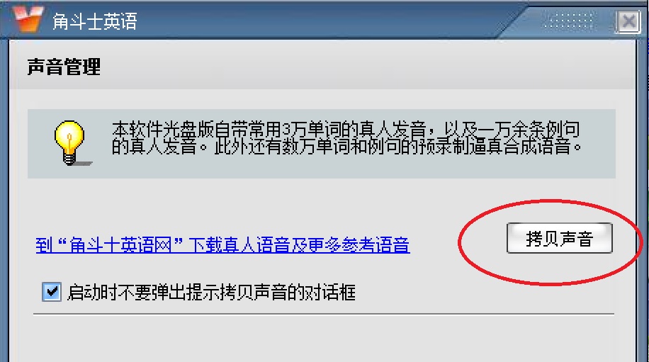 a. 启动我爱背单词,在主界面的“声音管理”里面点击“拷贝声音”按钮