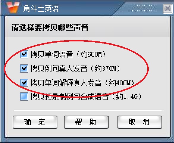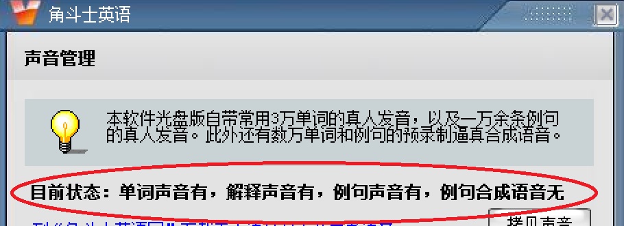 4. 在《我爱背单词9》主界面的“声音管理”里面检查一下语音文件是否拷贝成功,如下图就是拷贝完成,重新启动一下《我爱背单词9》软件就可以正常使用了。后面的软件拷贝步骤a-步骤d可以不必操作了。