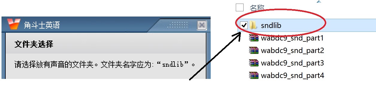 d. 在文件夹选择框中一定要选择上面步骤2中解压缩生成的那个sndlib文件夹(大约1.3G),然后点击“确定”,拷贝完成后,重新启动一下《我爱背单词9》软件就可以正常使用了。