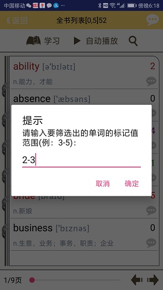 可以给每个单词赋予一个标记值(0-5),用于分类或按熟悉程度分级。软件能按标记值筛选单词(比如筛出标记值2-4的,标记值为3的)集中学习,避免在不必要的单词上浪费时间。筛选出的单词还可以批量摘录到自建书本。