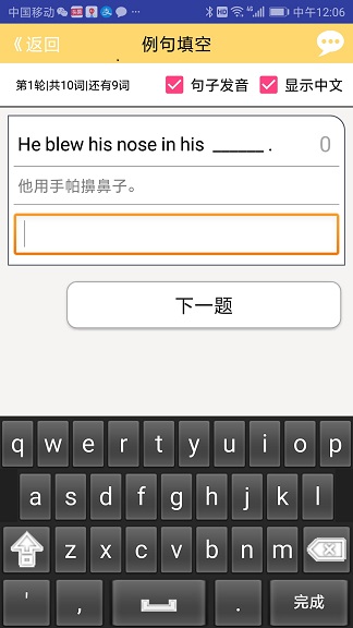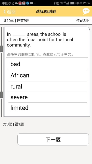 词义回想:点击词义处就能显示词义。 例句填空:在真实语境里学习单词,事半功倍!